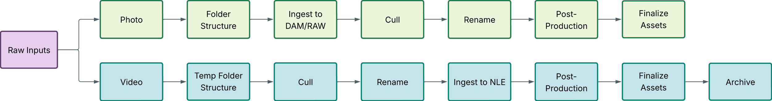 Streamlined handoffs are created through non-negotiable sequenced steps. File organization, culling, and standardized exports are a must so teammates can jump in mid-workflow and know exactly where to find what they need.
